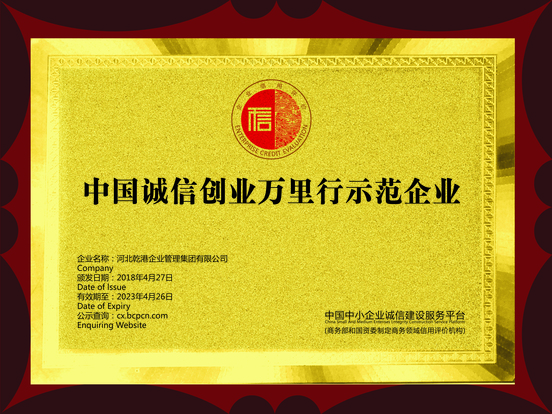 中國(guó)誠(chéng)信創(chuàng)業(yè)萬里行示范企業(yè)