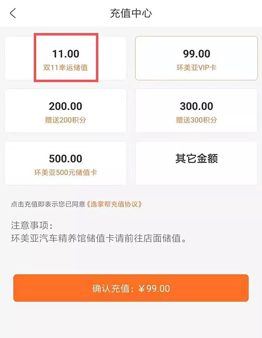 3、凡參與活動充值未中獎的用戶即可到環(huán)美亞門店進(jìn)行優(yōu)惠洗車1次(選擇到店洗車有效期15),如不選擇洗車可加價選擇店內(nèi)其他服務(wù)項(xiàng)目。